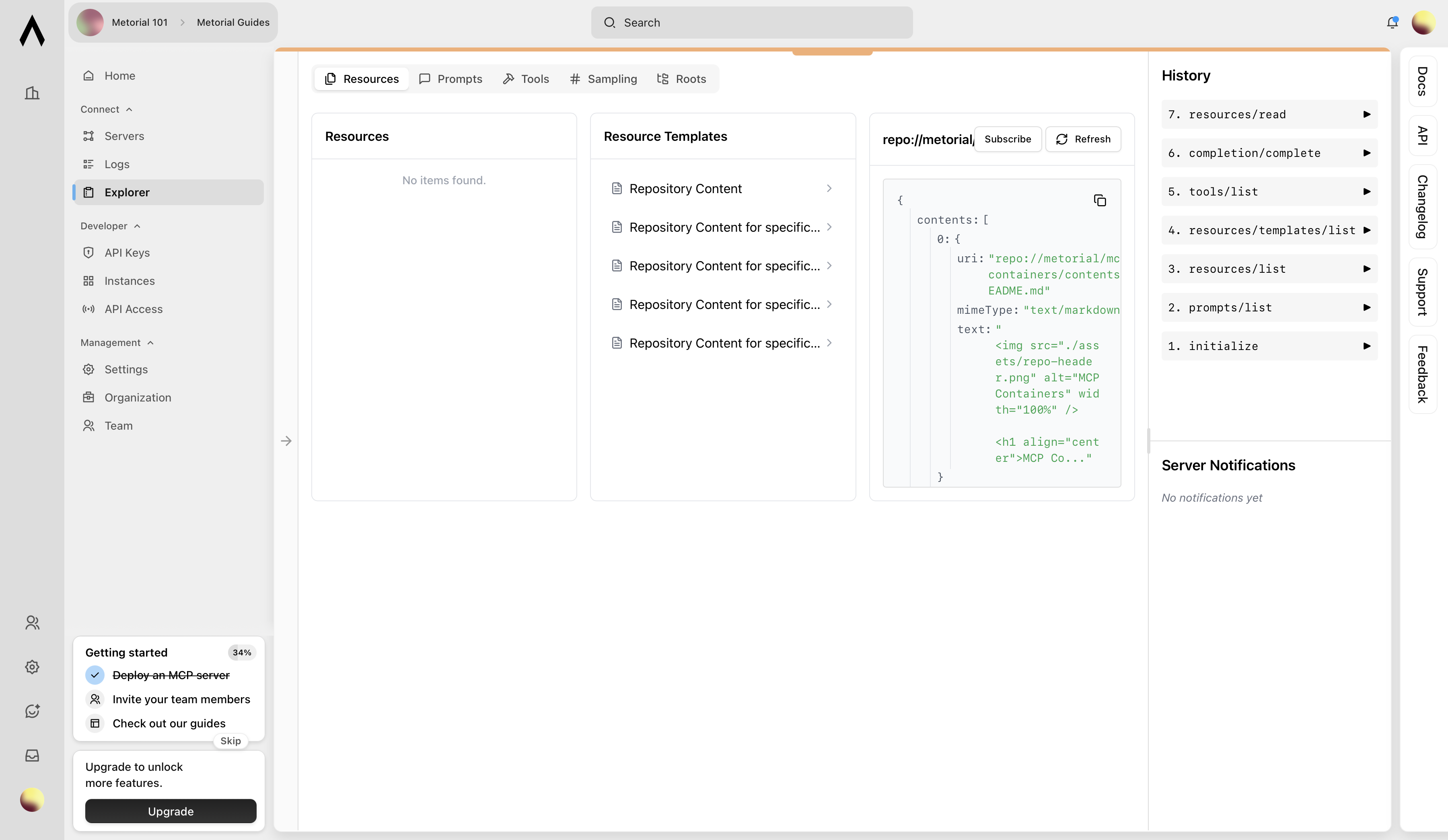 Click the Open Explorer button to open an interactive tool that lists all the MCP servers capabilities. capabilities.